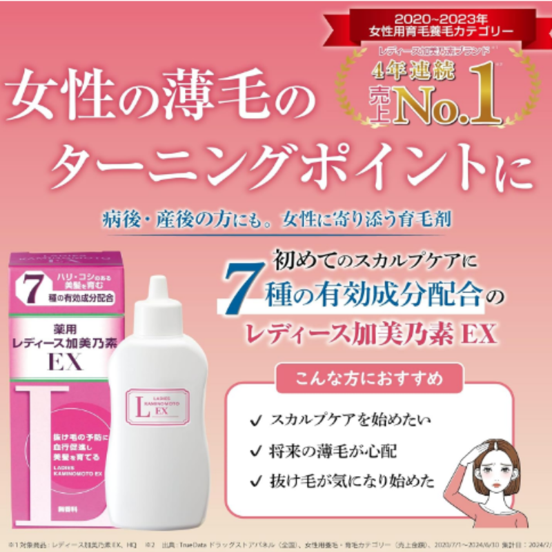 Experimente o Kaminomoto EX da Mediated Ladies ao cuidar do seu cabelo pela manhã e à noite. Ele mantém o couro cabeludo limpo e promove a circulação sanguínea, promovendo o crescimento de cabelos bonitos e saudáveis.